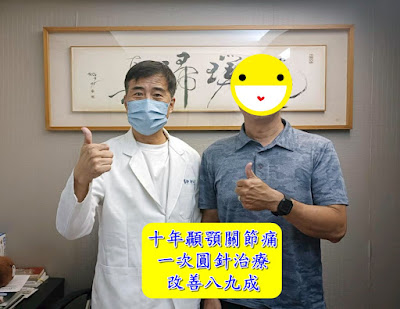 他的顳顎關節痛、嘴歪、咀嚼痛也隨之緩解。
